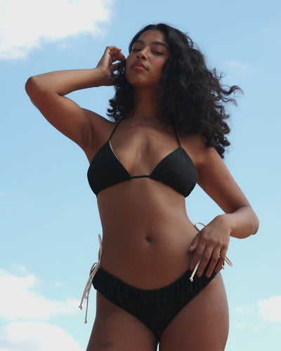Brigette Bardot com certeza usaria essa calcinha (muito provavelmente com o cofrinho a mostra), os lacinhos nas laterais te deixam regular o franzido da maneira que quiser.